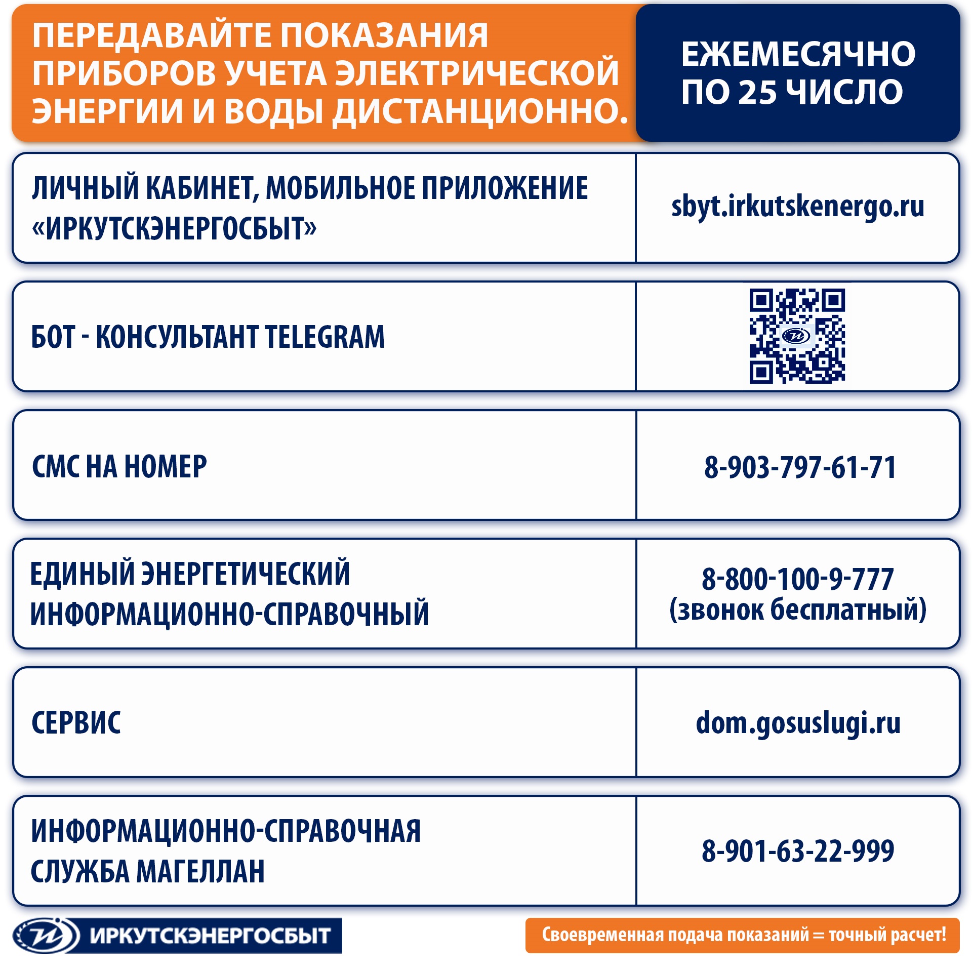 • без регистрации на главной странице сайта sbyt.irkutskenergo.ru/;
