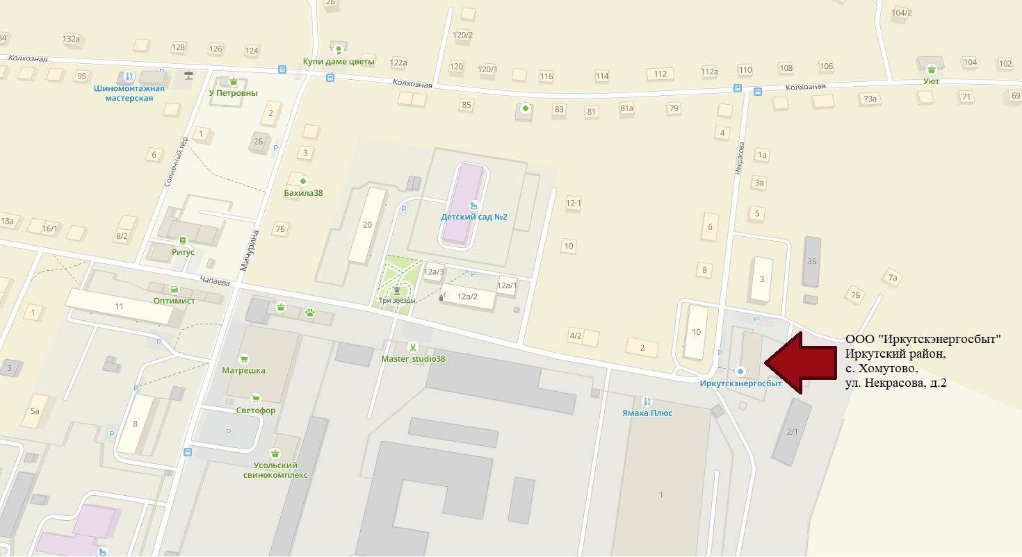 Схема расположения Сервисного центра Хомутовского участка: Иркутский район, с. Хомутово, ул. Некрасова, д.2