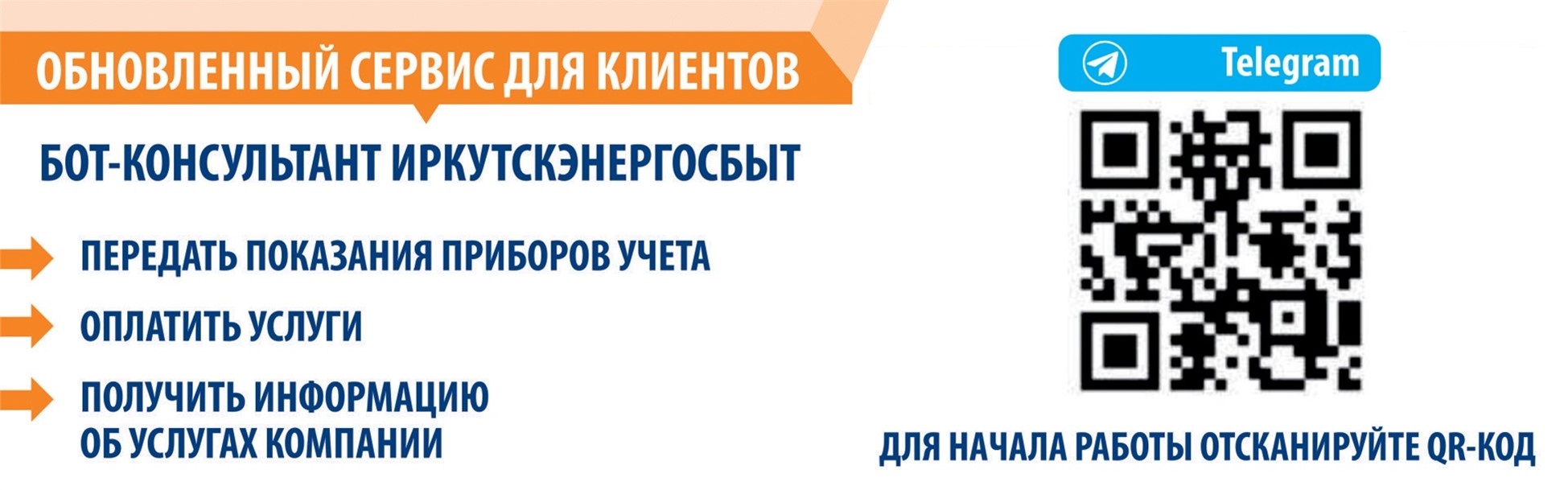 Сервис Иркутскэнергосбыта позволяет клиентам передавать показания счетчиков, оплачивать коммунальные услуги, уточнять справочную информацию в Телеграм, достаточно только запустить бота по ссылке https://t.me/iesbk_bot и далее следовать его подсказкам.
